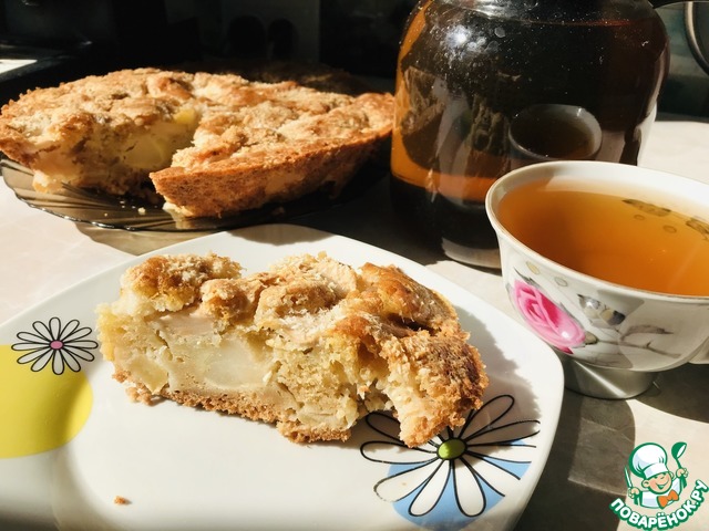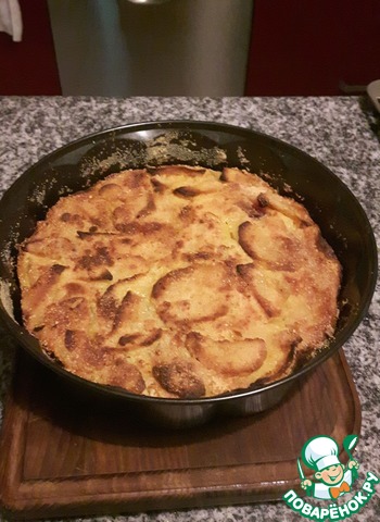 Яблоки поступают и поступают в дом и... быстро портятся. Ищем варианты пирогов, где побольше начинки и мало теста. Тесто подозрительно жидкое, но... результатом довольны все в семье! Тесто тут является связующим "цементом"для начинки. Сразу горячий разваливается, на утро хорошо держит форму и идём угощать соседей в благодарность за яблочки. Вы тоже угощайтесь! Рецепт нашла у Irina Cooking. Вариация знаменитого пирога от сестёр Симили.