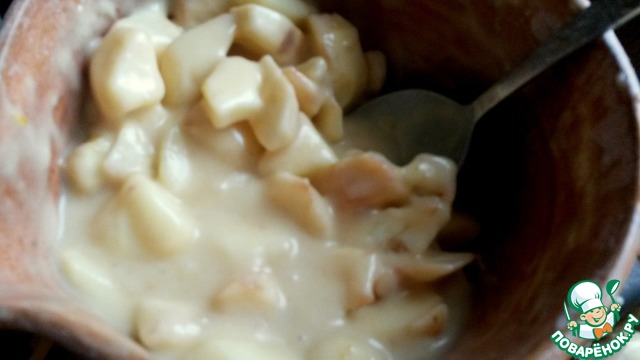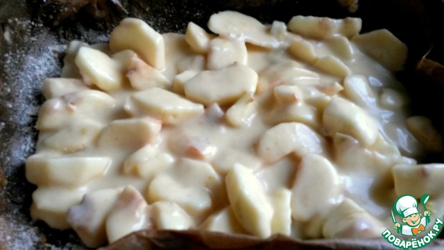 В полужидкое тесто опускаем партиями дольки или кубики яблок.