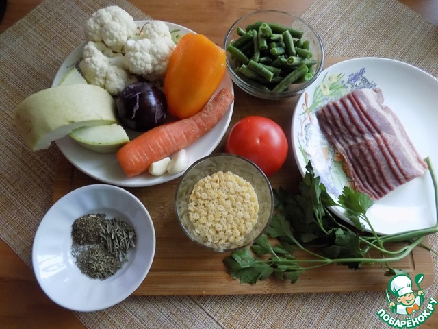 Ингредиенты для «Минестроне с сезонными овощами и беконом»: