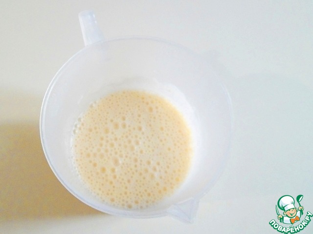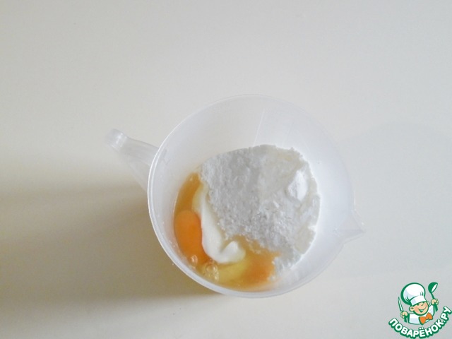 Соединить яйцо со сметаной, к ним добавить сахар и крахмал.