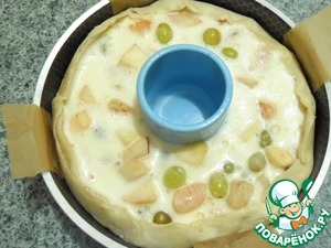 У меня нет формы нужного, для этого пирога, диаметра с трубой, потому я так поступила, боялась, что от фруктов не пропечётся середина.
