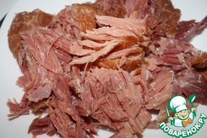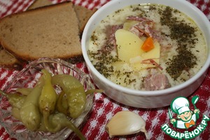 Мясо для этого супа - свинина и, причем, любая – мякоть, шея, рулька, ножки или ребра, если будет копченым, то тоже хорошо.