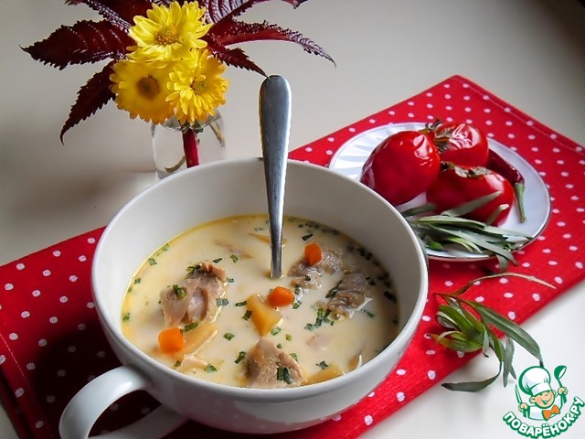 Изюминка супа это яично молочная заправка и эстрагон.Поэтому варИте как обычно вАрите суп и в конце заправка и специя