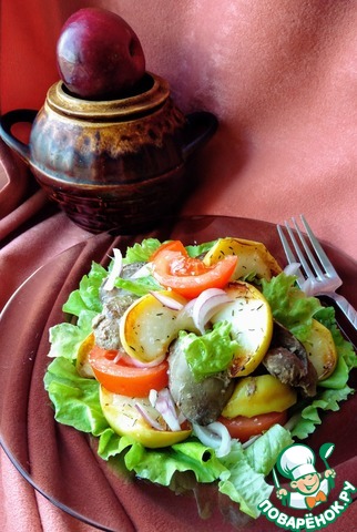 Вкусный, питательный и не слишком калорийный теплый салат. Лёгкий и быстрый в приготовлении.