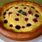 5. Выложить начинку на тесто, немного не доходя до краев, сверху по желанию разложить ягоды;
