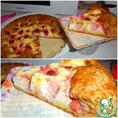 Описание: Вкуснейшая ватрушка с творогом и ягодами на заливном тесте готовится очень быстро и просто. Тесто получается очень мягкое и воздушное, а начинка – сочная, сладкая и ароматная. По желанию можно добавить любые ягоды, сухофрукты, цукаты и т. д.