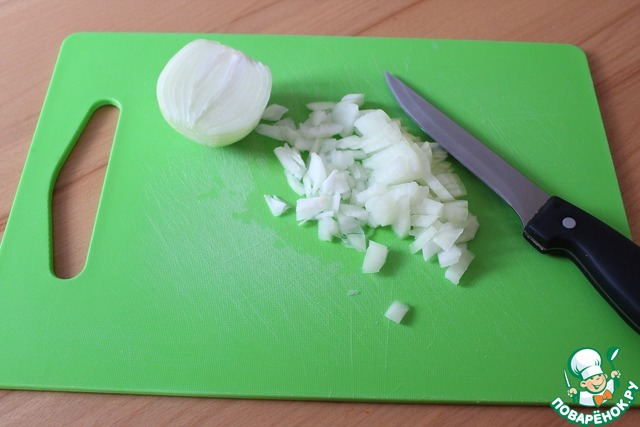 Лук нарезать кубиками.