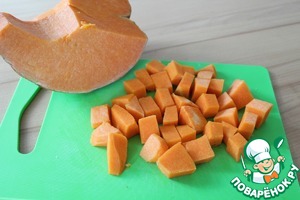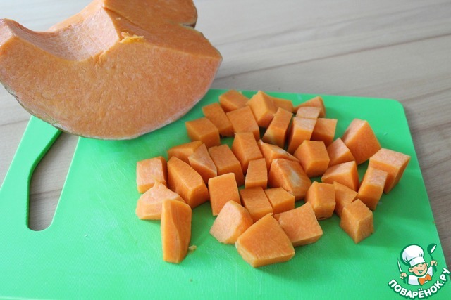 Тыкву необходимо очистить и нарезать крупными кубиками.
