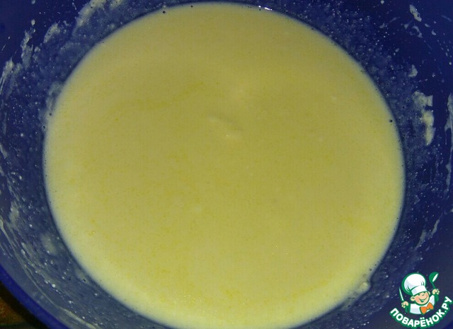 Добавить тёплое молоко и растопленное сливочное масло, перемешать.