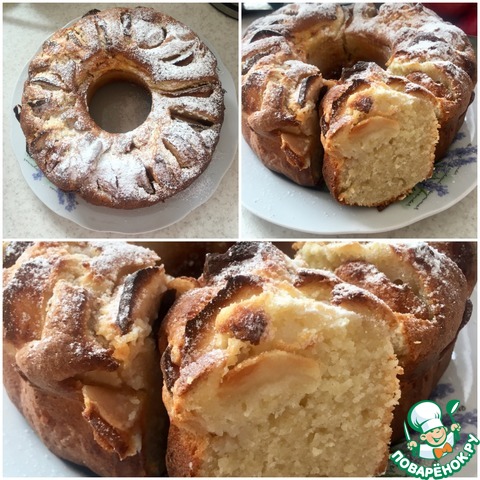 Пирог получается очень нежный, со слегка влажным верхом, за счет сочных яблок.
