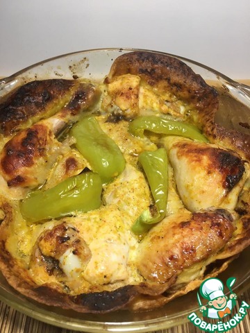 Замечательная курочка получилась .сочная и очень ароматная!!! Перец у меня зелёный.ещё я добавила копчёную паприку.вместо мацони.натуральный йогурт.Лаваша в следующий раз положу побольше.уж ооочень он вкусный получился. Людочка.спасибо за рецепт!