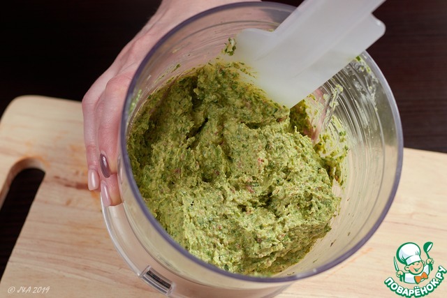 Измельчить все до однородной пасты, дать стабилизироваться в холодильнике 15 мин.