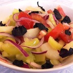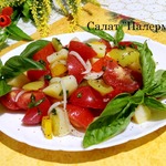 Рецепт этого салата я взяла у Рейчел Родди из ее кулинарной книги "Моя кухня в Риме". Очень вкусный, пикантный и в тоже время легкий салат.