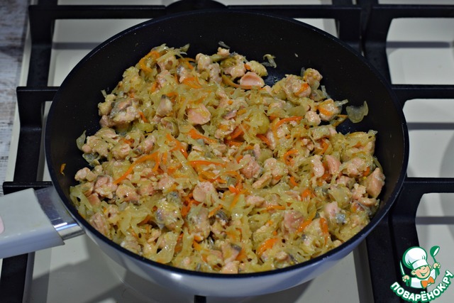 ... прогреть все вместе пару минут, снять с огня, остудить. В этот раз я готовила пирог с горбушей. Но можно использовать и другую рыбу. Подойдет треска, судак, сазан, кета, даже минтай.