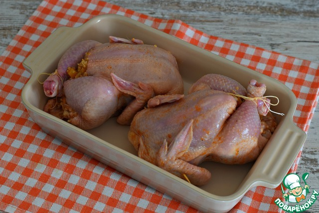 Цыплята, фаршированные пшеничной кашей и тыквой
