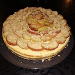 В разъёмную форму укладываем остывший корж, на него слой натёртых яблок, немного уплотняем его. Сверху - творожную массу. Ставим в духовку при 180 градусах на 50 - 60 минут.