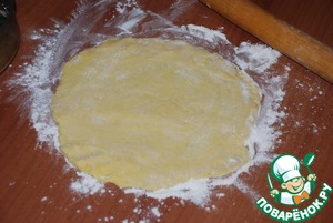 Все продукты сначала перетереть вилочкой, а затем быстро подмешать руками. Долго месить не нужно. Собрать тесто в шарик, отправить на 1 час в холодильник. Продукты для творожного слоя достать из холодильника.