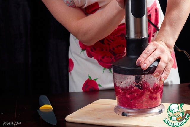 Зубчик чеснока, клюкву, коричневый сахар, лимонный сок и немного воды взбить в блендере до однородности