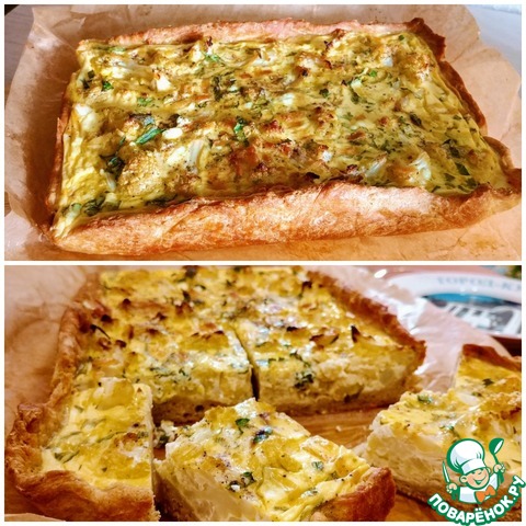 Пирог по рецепту Юлии Высоцкой. Я внесла свои изменения в начинку пирога. В оригинале рецепта присутствует Пармезан- 40 г, я его не положила и 150 г сметаны. Я вместо этого взяла 2 ст л сметаны и 150 г творожного сыра. Сочный ароматный пирог на рассыпчатом тесте.