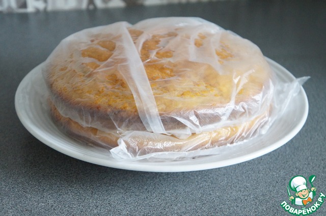 4. Каждый корж полностью остудить, завернуть в пакет или плёнку, оставить полежать пару часов (можно в холодильнике). Так коржи будут легче разрезаться и не крошиться.