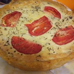 Залить молочной смесью, выложить кружочки помидоров. Присыпать зеленью свежей или сушёной (у меня базилик).