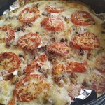 [+5]Пеку второй раз. В этот раз использовала домашнюю брынзу, моцарелу и сверху натёрла пармезан