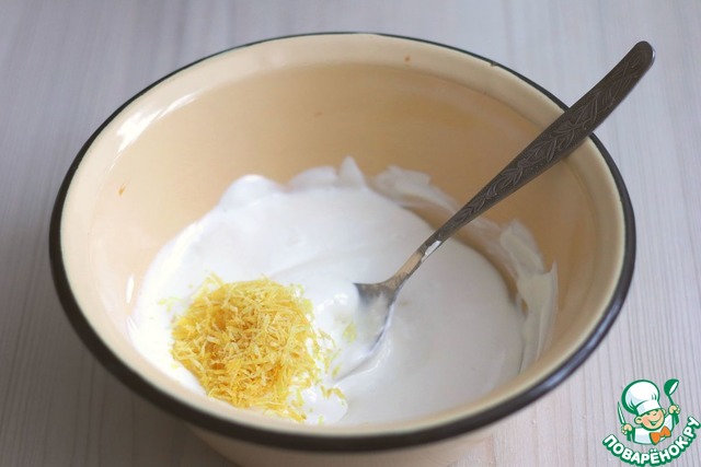 Добавить лимонный сок (1 ст. ложку), добавить цедру лимона (2 ст. ложки). Смесь перемешать.