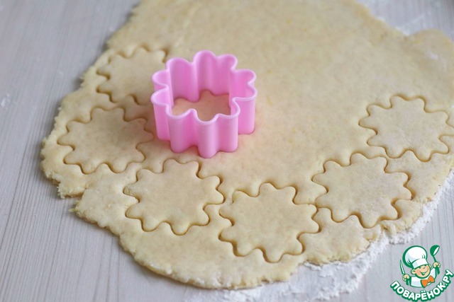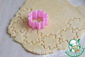 Далее холодное тесто раскатать в пласт толщиной 5-6 мм. Вырубкой для приготовления печенья вырезать фигурные изделия.