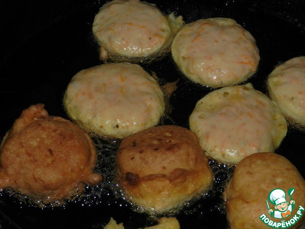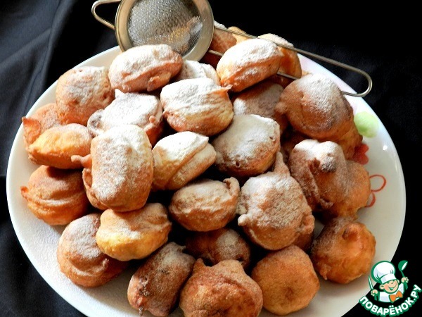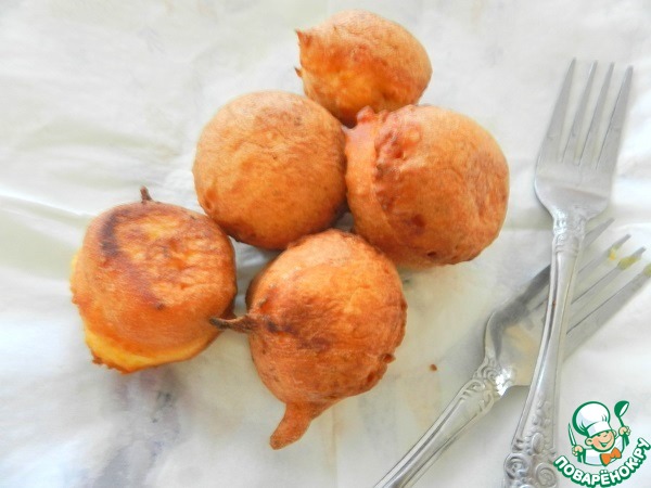 С помощью двух ложек сформировать шарики (по 1/2ст. л. теста) и обжарить с двух сторон до золотистого цвета на сковороде с большим количеством масла. Масло пончики практически не впитывают, мне хватило для обжаривания первоначально налитого на сковороду масла.