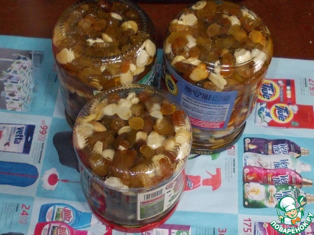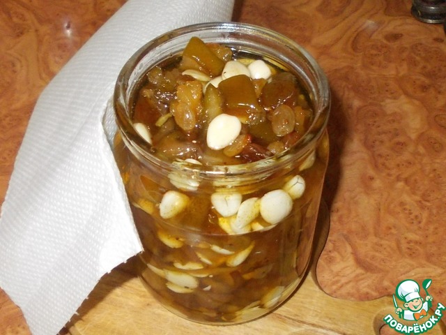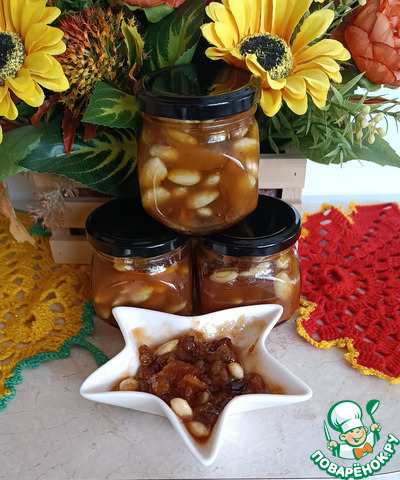 Немного ароматнейшего варенья остается и с огромным удовольствием можно его продегустировать! Густой сироп по вкусу и консистенции напоминает жидкий майский мед! Орехи, изюм и кусочки груш создают потрясающий букет! Приятного Вам осенне-зимнего чаепития!