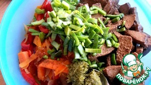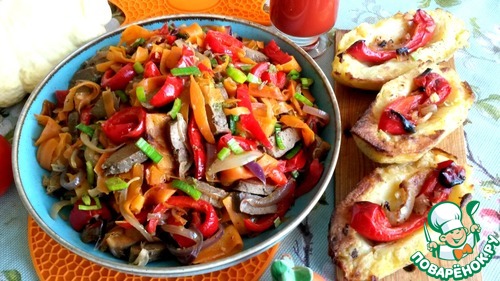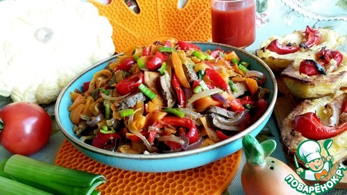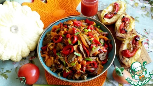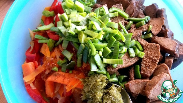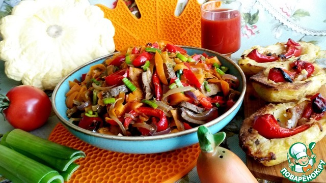 Блюдо для любителей овощей и печёнки. Можно готовить с любыми субпродуктами или мясом. Доступно, просто, вкусно! Хорошая заготовка для еды "с собой", перенесёт транспортировку и, постояв, станет только вкуснее. За идею благодарю Марию из Германии.