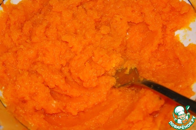 Тыкву нарезать маленькими кусочками и запечь в СВЧ. Пюрировать.
