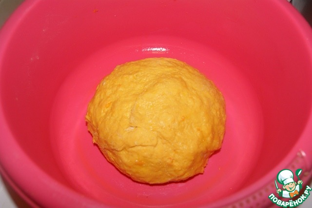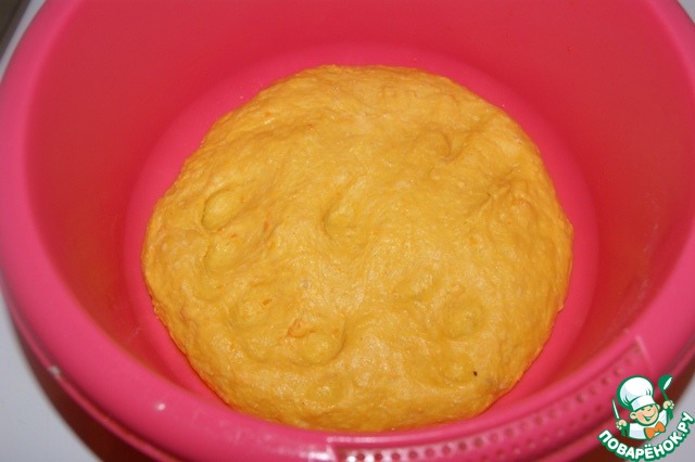 Замесить тесто и поместить его в емкость смазанную маслом. Поставить в теплое место на 40 минут.