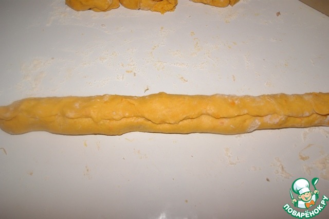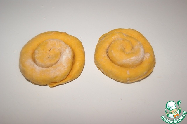 П. С. Я скрутила очень плотно, лучше это сделать с небольшим расстоянием, чтобы границы скрученного теста, при подъеме были более четко выражены! -