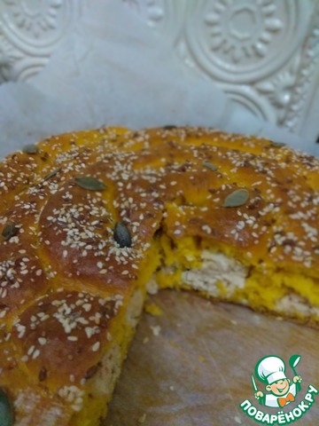 Домашний, мягкий, очень вкусный пирог из дрожжевого теста с добавлением тыквы, благодаря которой он долго остается мягким, если, конечно, доживет! Начинку можете подстроить по-своему вкусу, но куриное мясо и сливочный сыр, делают пирог сочным и сытным.