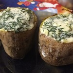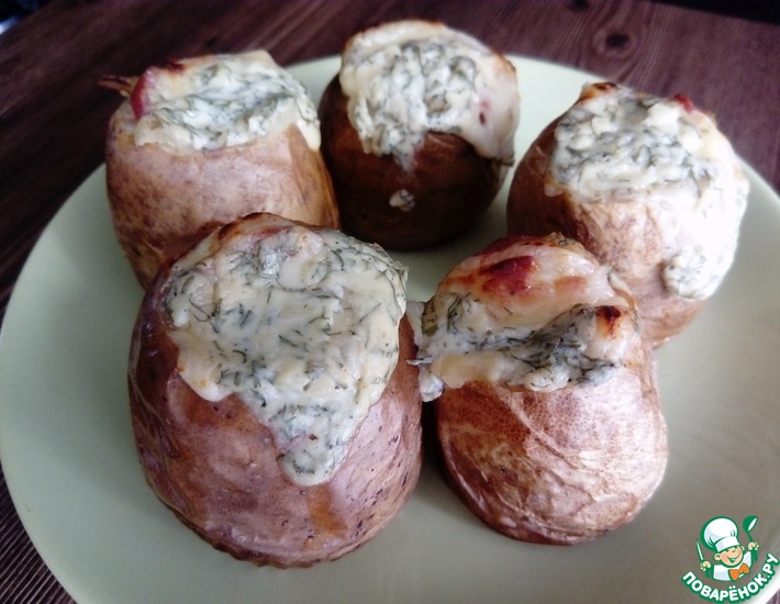 4. После того как картофель приготовился, срезаем верхушку и аккуратно при помощи ложечки удаляем середину картофеля так чтобы дно оставалось целым.