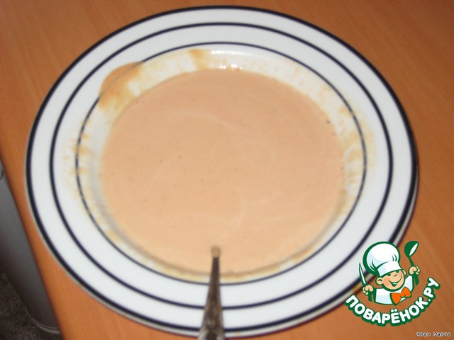 • Готовим соус из 2 ст. л. майонеза, 2 ст. л. кетчупа и 1 ст. л. соевого соуса. Заливаем этой смесью обжаренные бедрышки, обязательно доливаем водички и в течение 10–15 минут томим в духовке при 180*С.