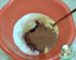 Печенье измельчить в блендере до состояния крошки. Переложить крошку в миску, добавить растопленное сливочное масло и какао. Хорошо перемешать.