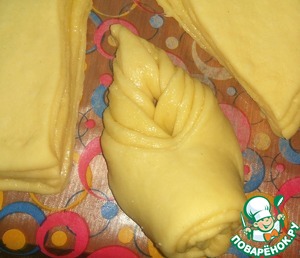 Каждую часть теста раскатать в пласт толщиной 5 мм.