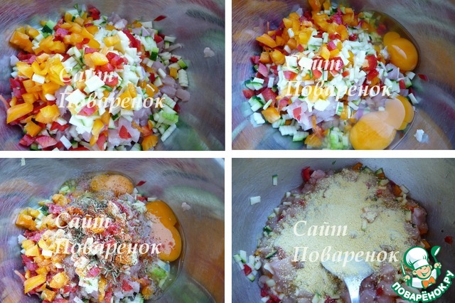 Рецептами котлет уже никого не удивить. Предлагаю приготовить котлеты из филе индейки с овощами и сыром. Рецепт простой, доступный. Котлетки вкусные, сочные, ароматные. Использую перец двух цветов и зеленый цуккини, котлетки получились яркими и красивыми. Идею подчерпнула в инете, авторских прав нигде не заметила.