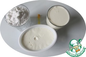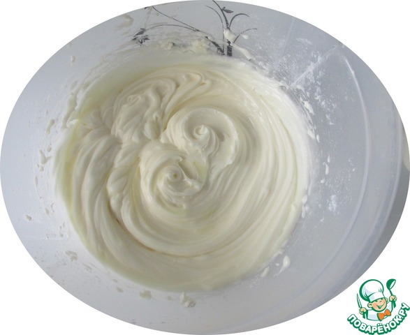 Взбиваем творожный сыр (творог), 50 мл сливок и сахарную пудру в однородную массу