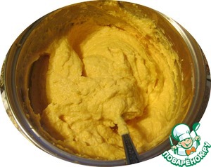 Мягкое сливочное масло растираем ложкой и добавляем его в остывшую тыквенную массу в несколько приемов, взбивая миксером.