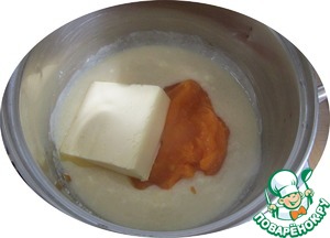 Добавляем тыквенное пюре (150 г) и сливочное масло