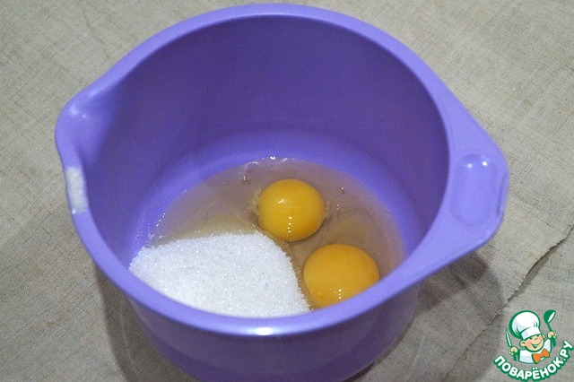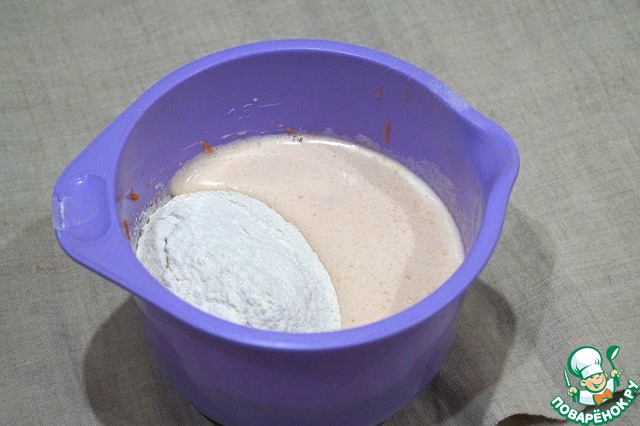 Добавить муку с разрыхлителем, перемешать до однородной массы.