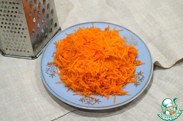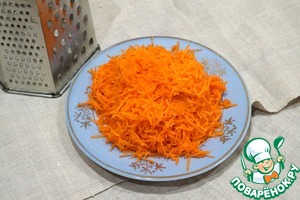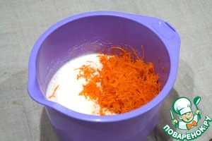 В яичную смесь влить чай, растительное масло, добавить натертую на терке морковь, перемешать.