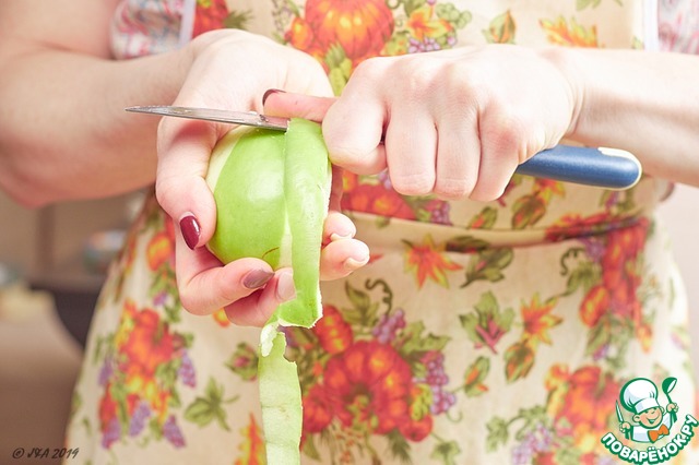 Яблоки очистить от кожуры и серединок. Нарезать на дольки.