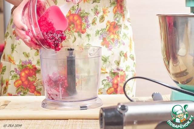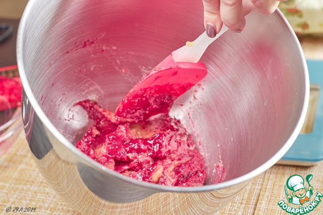 Из полученного количества пюре отмерьте по 100 гр. каждого вида и смешайте. Остудите до комнатной температуры.
