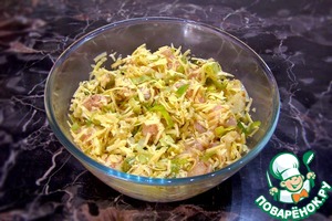 Лук нарежем и слегка обжарим на сливочном масле на небольшом огне. Трех-пяти минут будет достаточно.