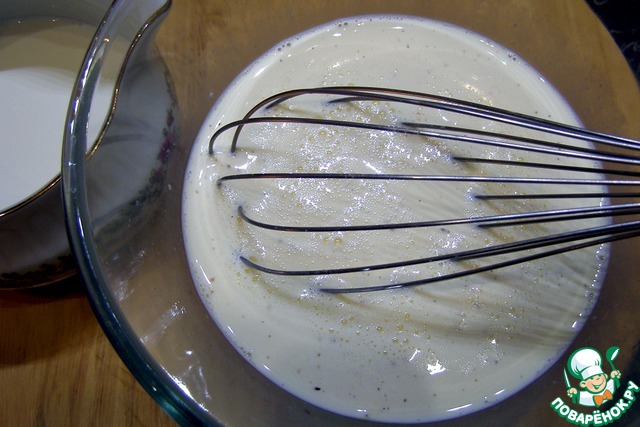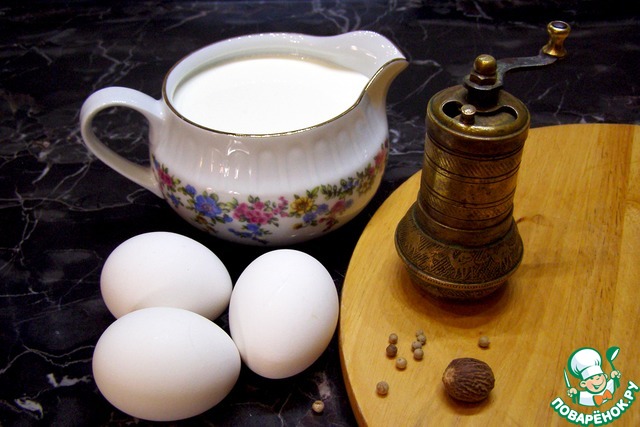 Яйца надо взбить венчиком, добавить сливки и молотые пряности. Хорошо перемешать.