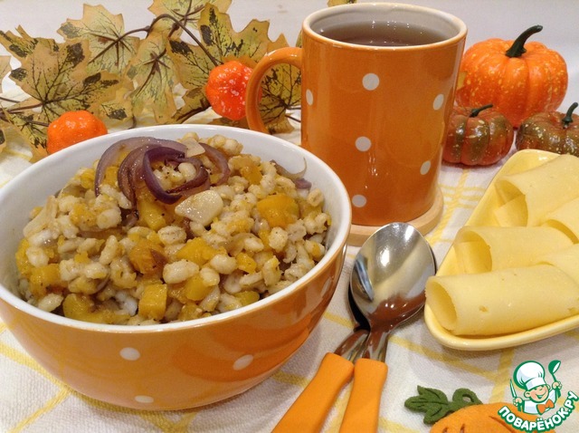 Простое и добротное блюдо без претензий на изысканность. Но вкусное, полезное, сытное и доступное. Перловая каша с тыквой и репчатым луком. Достойный гарнир или самостоятельное постное блюдо. Попробуйте!